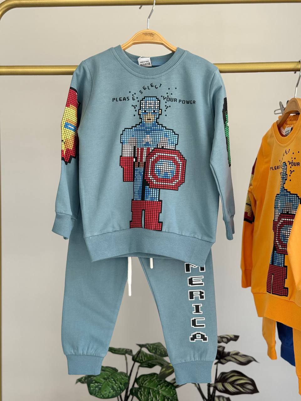 • Bottoms: Matching joggers with Captain America and elastic waistband