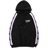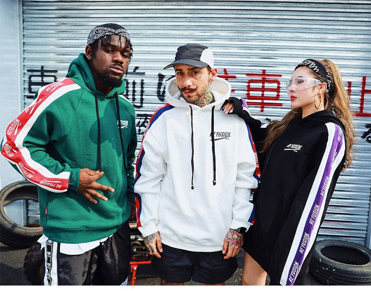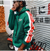 Men Side Letter Fleece Hooded Pullover Street Fashion Hip Hop