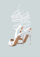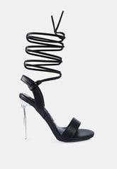 Sheeny Clear Stiletto Lace Up Heels