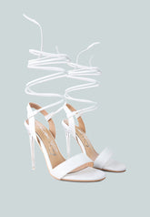These lace-up sandals are a stunning example of beauty in minimalism, featuring a clear stiletto heel screaming trendy and beautiful. The versatile design ensures maximum wearability, making them perfect for various occasions. Whether you're a bride, a wedding guest, or a bridesmaid, these shoes will add a lovely finishing touch to your attire.