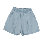 Beautiful summer set dressed for perfect family outings including a soft cotton t-shirt (95% Cotton / 5% Lycra) and wide shiny denim shorts (80% Viscose / 10% Polyester / 10% Lurex).