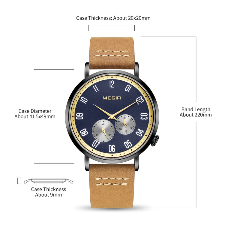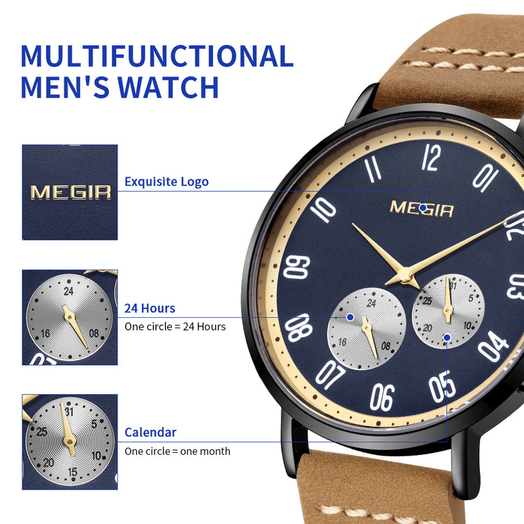 MEGIR Fashion Casual Men Watches Luxury Leather Quartz Sport Wristwatch Waterproof Luminous Clock Large Dial Relogio Masculino 1083